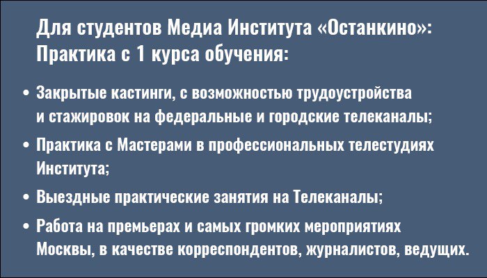 Медиа Институт Телевидения и Радиовещания «Останкино» - фундаментальное образование для будущих профессионалов творческой сферы!