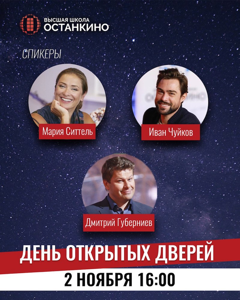 Высшая Школа Кино и Телевидения «Останкино» — это общение со звездами телевидения, кино, театра, эстрады на расстоянии вытянутой руки, творческие встречи. На регулярной основе проводятся мастер-классы: Владимира Познера, Ксении Собчак, Тины Канделаки, Андрея Малахова, Антона Комолова, Яны Чуриковой, Ирины Хакамада, Егора Кончаловского, Регины Тодоренко, Ивана Чуйкова и многих других. Посещение для всех учащихся, выпускников и абитуриентов, уже заключивших договор абсолютно бесплатно.